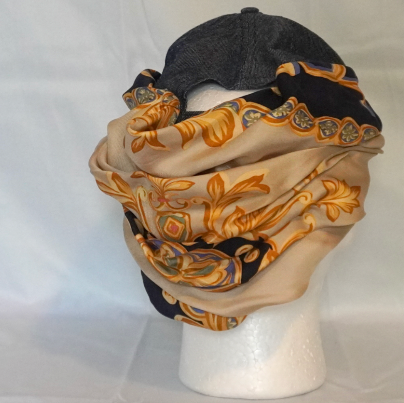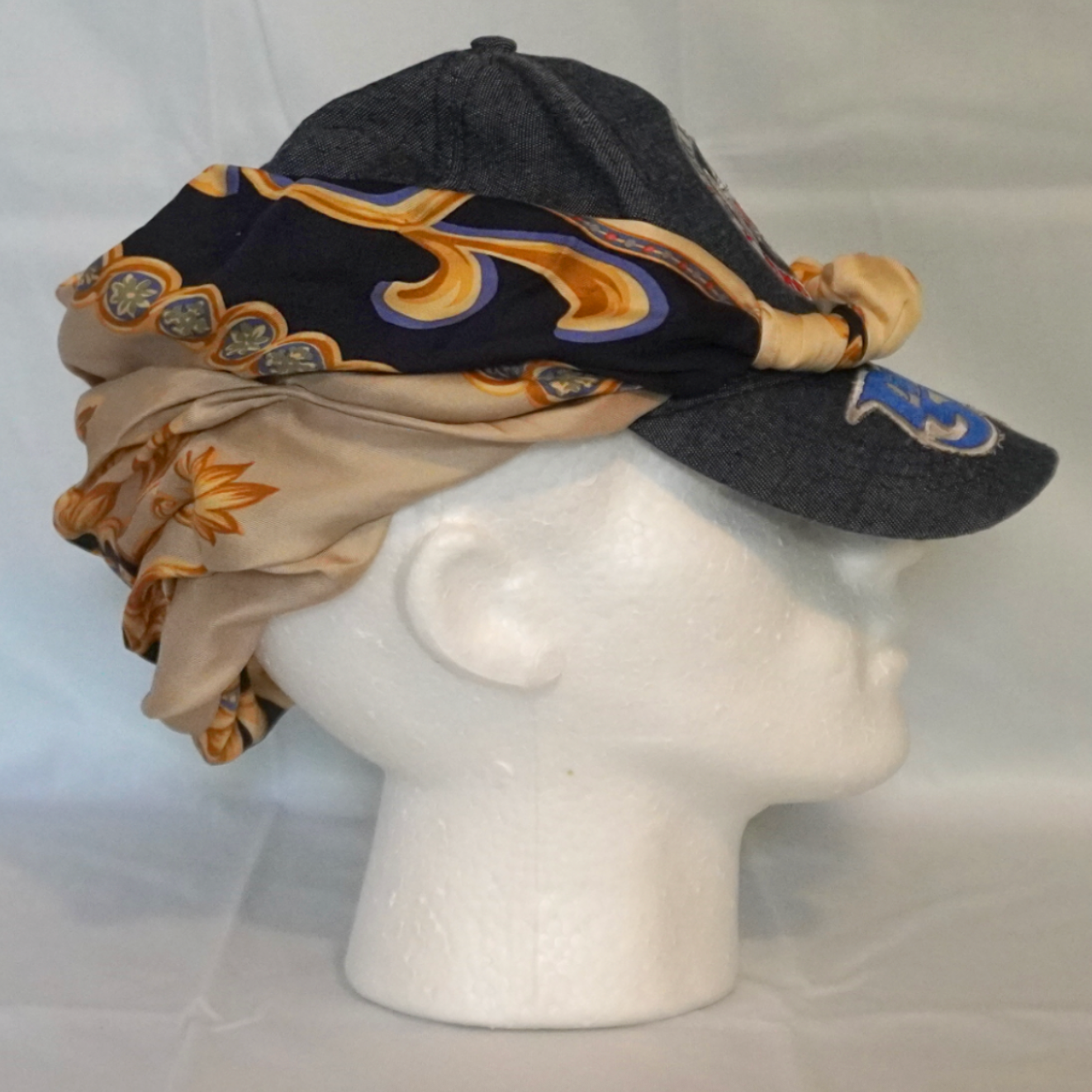1/1 Upcycled Trucker Hat by Riac Oseph (WWII Veteran & Baroque Scarf Wrap)