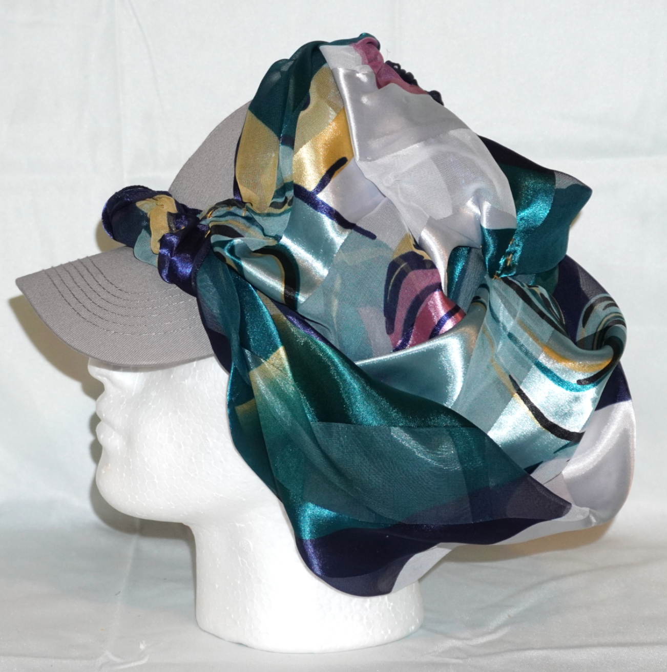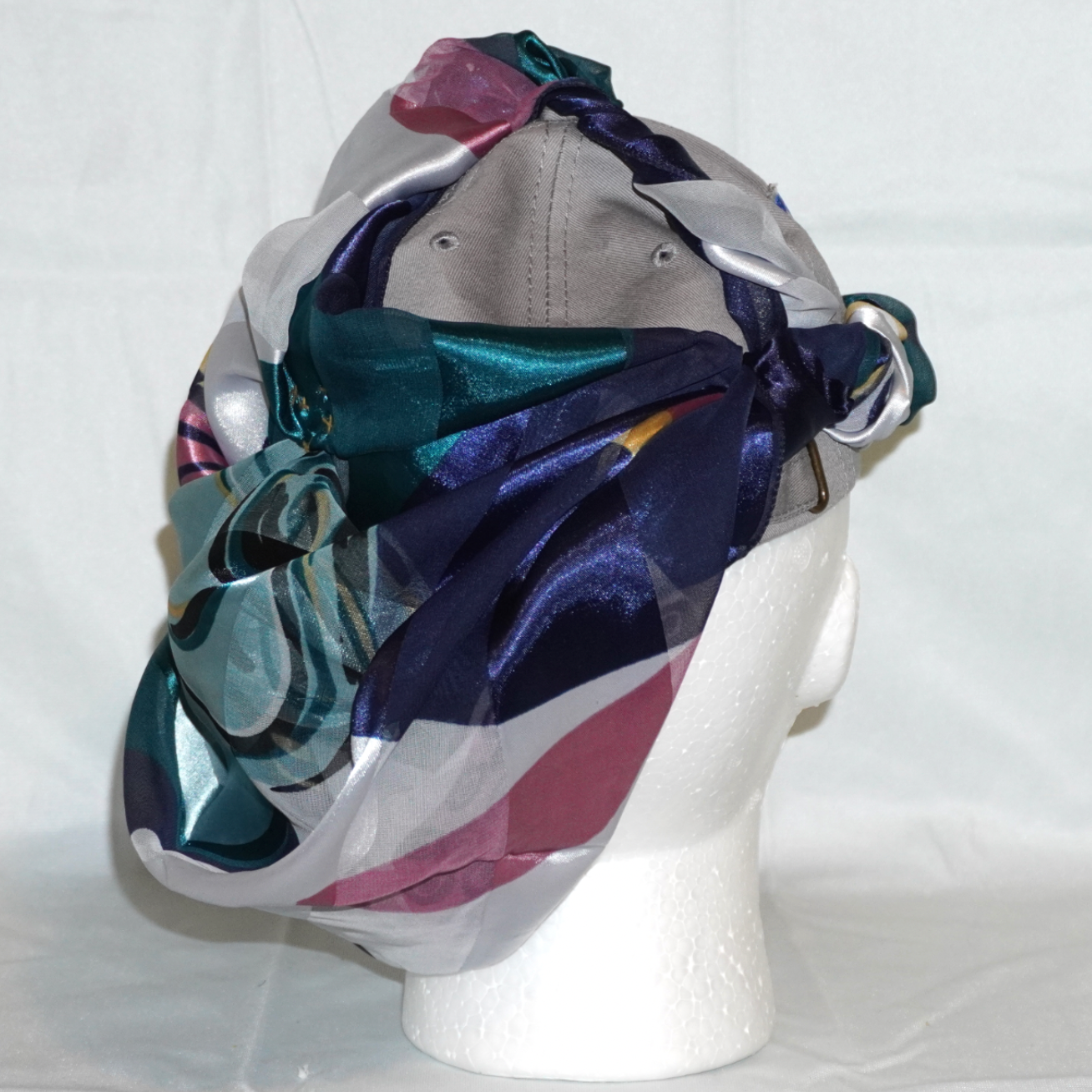 1/1 Upcycled Trucker Hat by Riac Oseph (Grey Cap & Ocean Silk Drape)